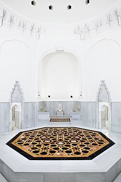 There are actually 2 entrances to the Hagia Sophia Hurrem Sultan Bathhouse as there is a strict divide between women and men. I have only seen inside the men’s section but I am told they are identical. Inside you find a reception which looks like something out of One thousand and one Arabian nights complete with a fountain.